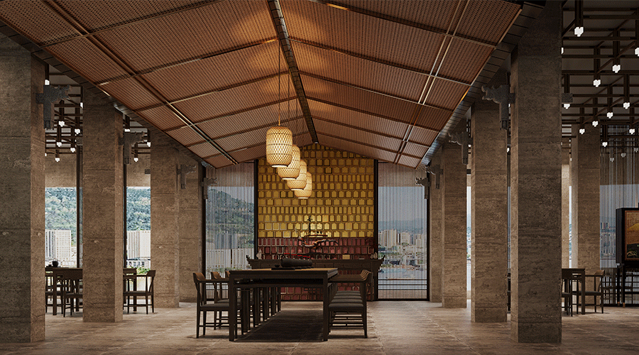 在本案室內(nèi)設(shè)計中,我們巧妙地利用空間的高度與縱深度,打造了一個模擬自然天光的設(shè)計概念。在一樓入戶玄關(guān)處,我們頂部巧妙躲開原建筑梁位設(shè)計一個燈膜元素,自然的發(fā)光能夠更好灑在空間中。玄關(guān)相鄰的茶室空間,在隔斷上運用了窺探、懸挑的手法,在保證茶室私密性的同時也兼顧了兩者的互動體驗。在茶臺臺面通過巖板的延伸到玄關(guān)背景,增加了趣味性。